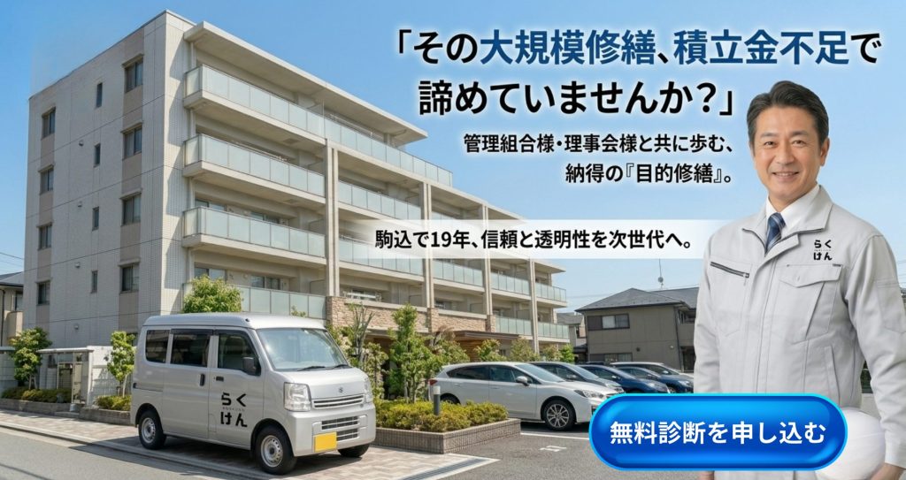 「建物と経営の不安を、確かな技術で安心へ。駒込で19年、理事会様の重圧を分かち合い、住民の皆様が納得できる修繕をサポートいたします。」