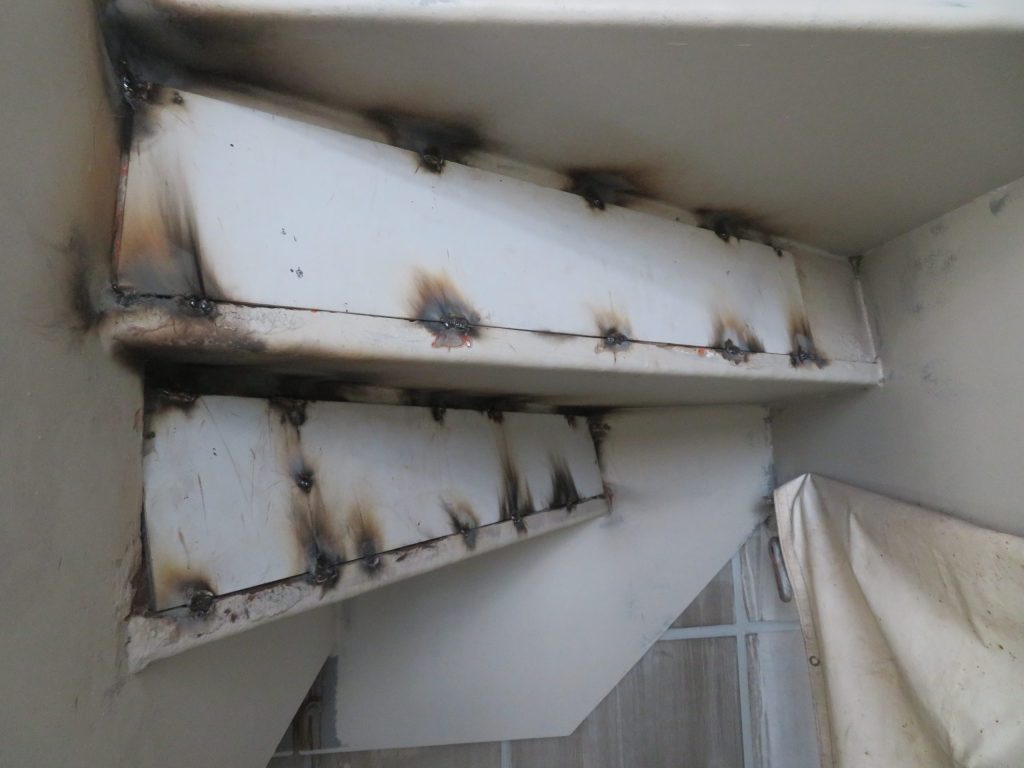 塗装では補修しきれないほど腐食した鉄骨階段を、板金加工によって補強・再生します。落下の危険性を排除し、歩行時の音の軽減や防水性の向上を図ります。